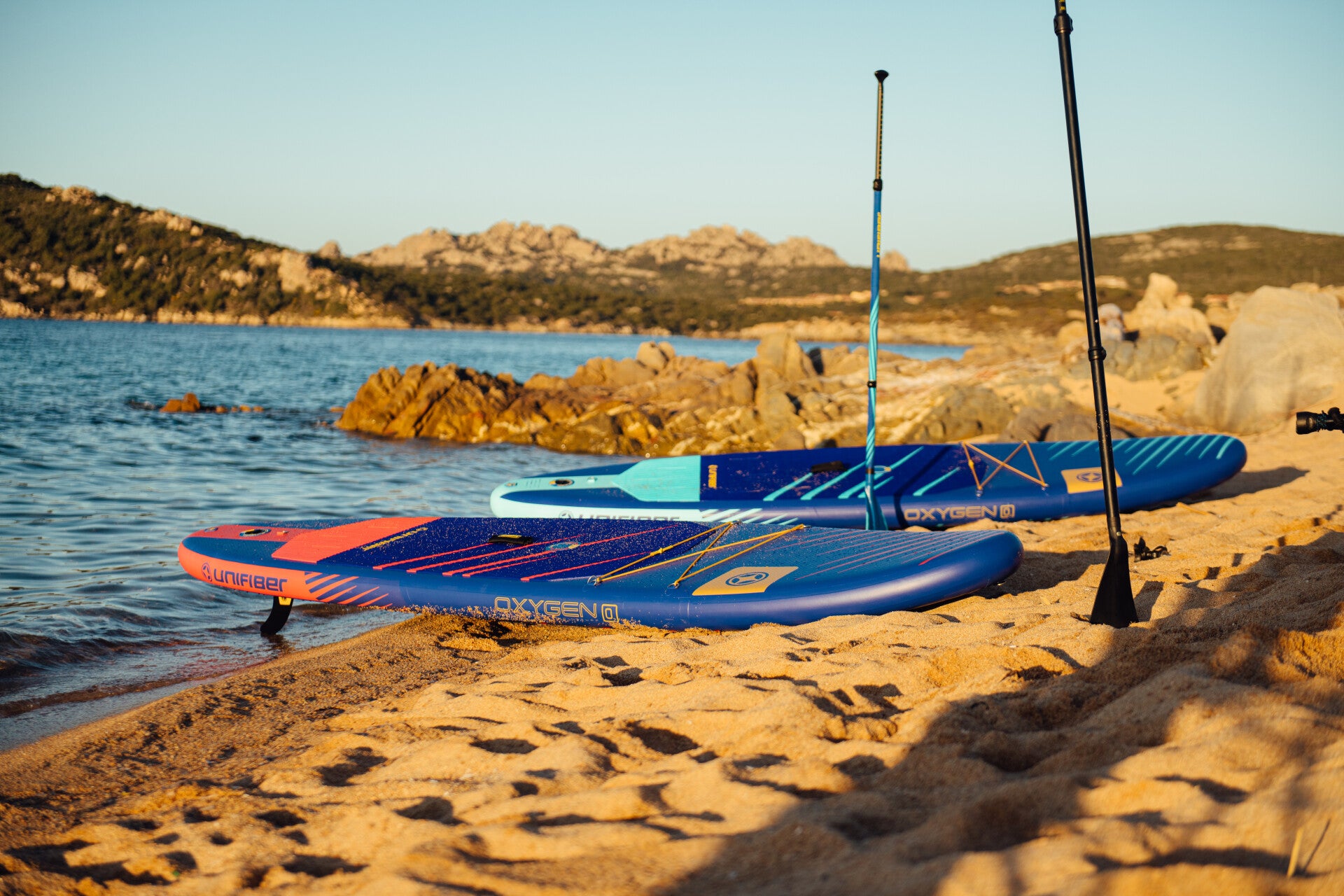Het board wordt geleverd met pomp, lease en peddel. Met ca. 10 minuten heb je het board klaar voor gebruik (met duidelijke handleiding geleverd) en kun je lekker het water op!