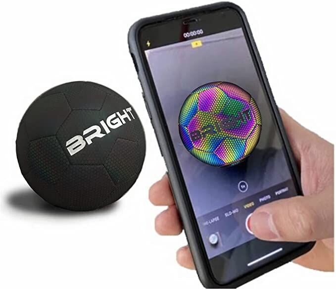De BRIGHT voetbal is gemaakt van hoog kwaliteit reflecterend leer met een holografisch effect en heeft het gevoel en de veerkracht van een normale voetbal. De bal lijkt zwart wanneer het helemaal donker is en er geen licht op geschenen wordt, maar wanneer je een foto/video met flits maakt geeft de bal licht op je telefoonscherm, zo kan je de gaafste content maken zonder enige edit-werk. Je voetbalskills showen op social media is nog nooit zo opvallend geweest als nu!