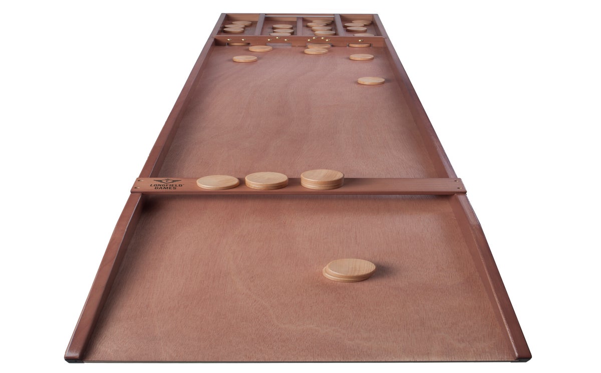 Luxe beukenhouten wedstrijd sjoelbak inclusief 30 sjoelstenen. Afmetingen: 200 x 40,5 x 7,5 cm.